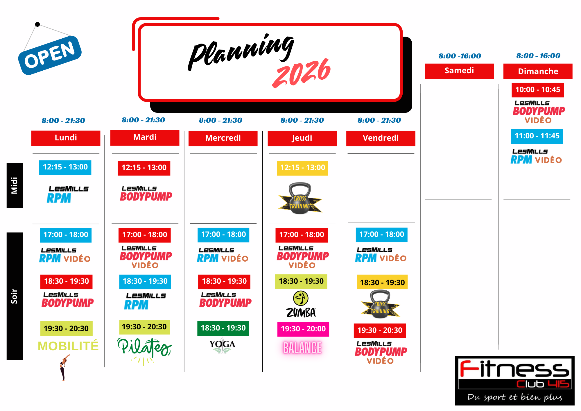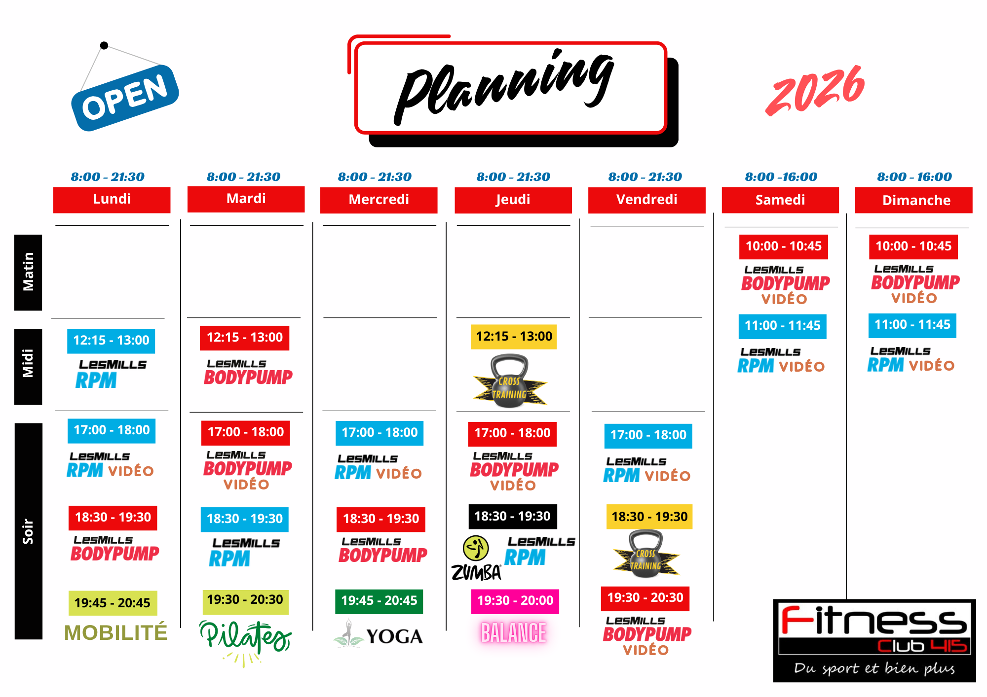 Nos coachs vous proposent des cours collectifs avec notamment le RPM, Body PUMP, GRIT, Body Combat, Yoga et bien d'autres...